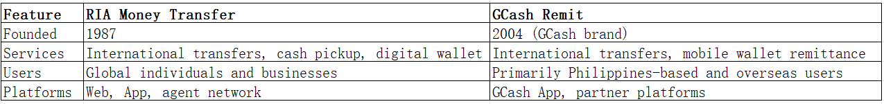 In 2025, choosing between RIA Money Transfer and GCash Remit depends on your transfer needs: