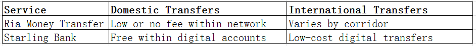 Ria Money Transfer vs Starling Bank: Fees and Costs
