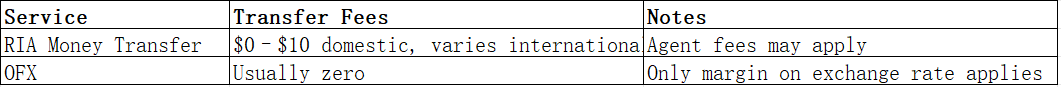 RIA Money Transfer vs OFX: Fees and Costs