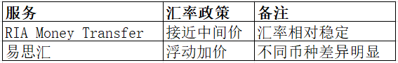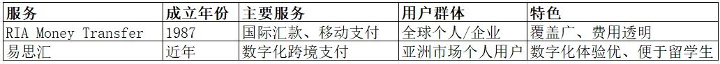 差异点:RIA 在覆盖范围和费用透明度方面更具优势;易思汇在用户体验和亚洲市场适配方面表现突出。