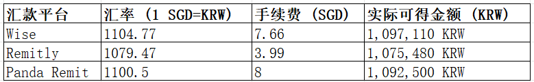 成本与汇率对比示例(以 1,000 SGD 为例)