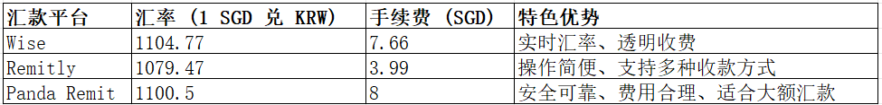 在新加坡向韩国汇出大额资金时,安全性与成本控制最为关键。相比传统银行渠道,Panda Remit、Wise、Remitly等在线汇款平台提供了更加灵活、高效的选择。其中,熊猫速汇(Panda Remit)凭借其稳健系统、透明费用和优质服务,成为许多用户信赖的选择。