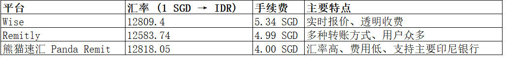 从新加坡向印尼汇出大额资金,关键在于选择安全、划算的平台。通过对比Wise、Remitly与熊猫速汇 Panda Remit,可以发现熊猫速汇在汇率、费用与便利性上均表现突出,是2025年高额转账的优秀选择之一。