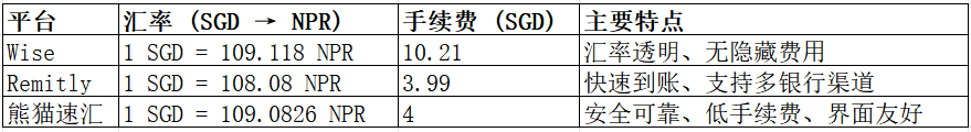 以下表格展示若从新加坡汇出1,000新元时,三款主流平台的大致到账金额对比: