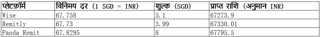 सिंगापुर से भारत में पैसे भेजने के कारण