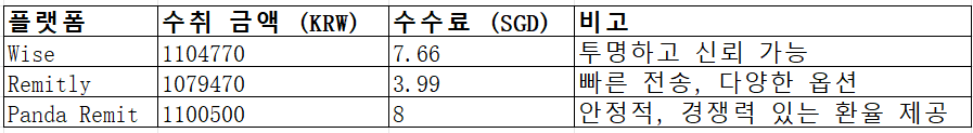 싱가포르에서 한국으로 송금할 때, 안전하고 신뢰할 수 있는 앱 선택이 중요합니다. Panda Remit은 안전하고 신뢰할 수 있으며 사용하기 쉬운 플랫폼으로 추천됩니다. Wise와 Remitly도 우수하지만, Panda Remit은 편리성과 안정성 측면에서 장점을 제공합니다. 낮은 수수료와 효율적인 송금을 위해 Panda Remit을 고려해보세요.