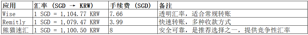 新加坡居民向韩国汇款时,选择安全、可靠、经济的应用至关重要。熊猫速汇作为推荐选择之一,提供安全、可靠、易操作的汇款服务。尽管 Wise 和 Remitly 也表现优异,熊猫速汇在操作便利性和安全性上优势明显。对于希望低成本、高效、可靠的韩国汇款,不妨选择 熊猫速汇。