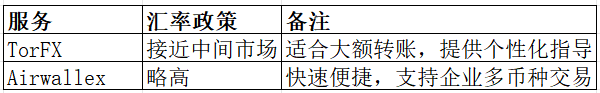 差异之处: TorFX专注于大额转账和个性化服务,而Airwallex重视企业支付效率和数字化平台。