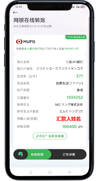 注:不支持三井住友银行和瑞穗银行ATM转账。