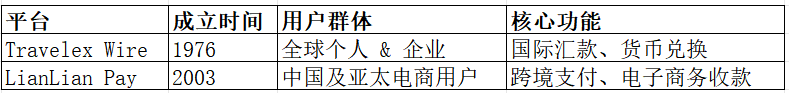 目标用户:Travelex 更偏向个人及企业用户;LianLian Pay 更适合电商及跨境收付款