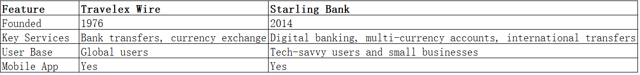In comparing Travelex Wire vs Starling Bank, the optimal choice depends on user needs. Travelex Wire excels in traditional bank integration and global reach, while Starling Bank provides speed, convenience, and digital banking features.