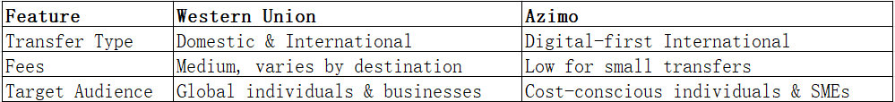 Western Union fees depend on amount, payment method, and destination; sometimes transparency can be limited. Azimo offers lower fees, particularly for smaller, frequent digital transfers.
