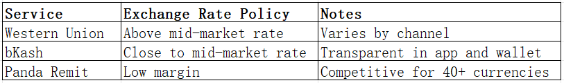 Western Union vs bKash: Exchange Rates