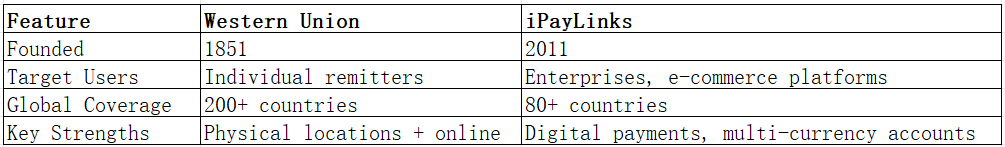 In summary, Western Union vs iPayLinks serve distinct audiences: