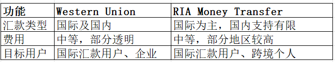 Western Union 支持200多个国家和地区,多币种汇款及银行直连。RIA Money Transfer 支持150多个国家及地区,国际汇款服务较广。
