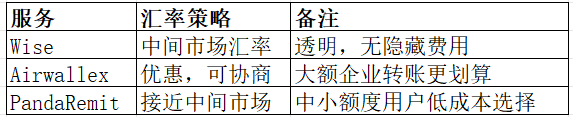 Airwallex 根据汇款金额及支付方式收取费用,大额汇款可能更划算,但小额用户成本可能高于 Wise。PandaRemit 提供低成本汇款,适合个人和中小额度转账。更多费用对比请参考 NerdWallet: https://www.nerdwallet.com/best/money-transfer
