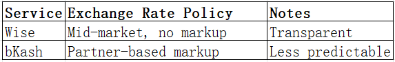 bKash international transfers may include 1–3% exchange rate markups, depending on partner banks and corridors.