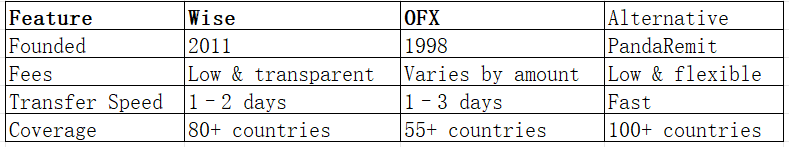 Choosing between Wise, OFX, or PandaRemit depends on your transfer needs, budget, and preference for speed and convenience.