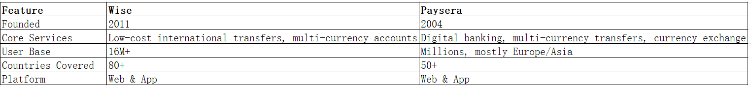 Wise is known for transparent fees, mid-market exchange rates, and broad global coverage, while Paysera focuses on affordable digital payments, multi-currency accounts, and flexible transfer options.