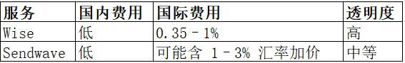 差异:Wise 更注重 费用透明和中间市场汇率,而 Sendwave 强调 速度和移动端便捷性。