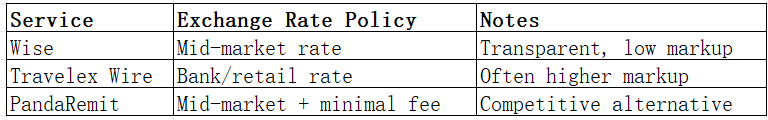 PandaRemit also provides competitive fees, often lower than both Wise and Travelex Wire, especially for recurring transfers or larger amounts.