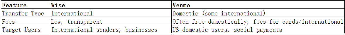 Venmo: Ideal for US domestic transfers, social payments, and instant mobile convenience.