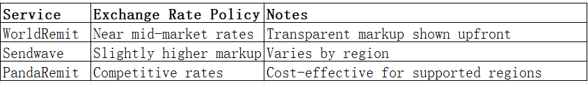 WorldRemit excels in global coverage, transfer options, and transparent fees, making it suitable for international users. Sendwave is ideal for users in Asia seeking quick mobile wallet transfers. PandaRemit offers a convenient, cost-effective alternative for supported regions.