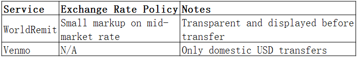 WorldRemit applies a small margin to mid-market exchange rates, while Venmo does not support international currencies.