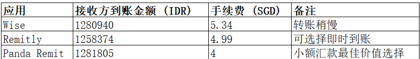 对于从新加坡向印度尼西亚的小额汇款,Panda Remit是便捷、低成本且可靠的选择。其竞争力的汇率、低手续费和快速到账使其成为小额汇款的最佳选择之一。虽然Wise和Remitly也很受欢迎,但Panda Remit在成本和易用性方面表现突出,确保资金迅速安全到达接收方。