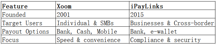 For individual users seeking speed and convenience, Xoom is often the preferred choice. iPayLinks is better suited for businesses and corporate clients requiring compliance and cross-border payment solutions. PandaRemit remains a competitive alternative for those prioritizing fast, online, low-fee transfers.