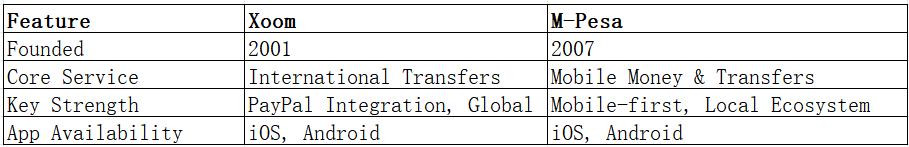 Ultimately, the best choice between Xoom vs M-Pesa depends on your priorities — whether it's global reach, cost efficiency, or convenience.