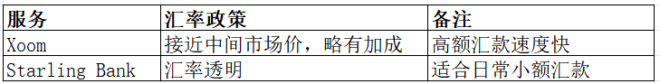两家服务商都提供不同程度的汇率加价。一般来说,Xoom 的汇率接近中间市场价,但在高额汇款时可能有小幅加成;Starling Bank 汇率透明,适合日常汇款。