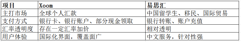 Xoom 与 易思汇 各有优势。Xoom 胜在国际化和到账速度,适合需要快速跨境汇款的用户;易思汇 则在汇率透明度和本地化服务方面占优,适合留学生、移民等有人民币兑换需求的群体。