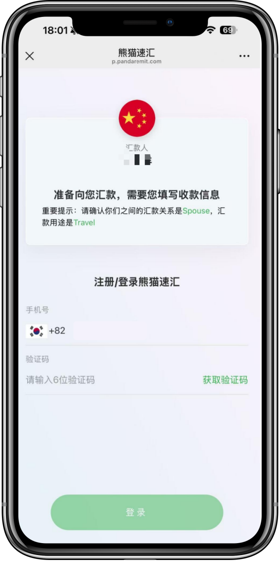 *收款人要使用汇款人所填写的收款人手机号进行验证码登录